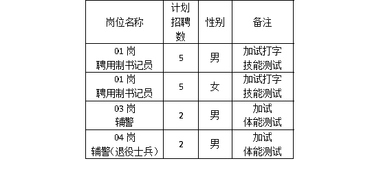 ③資格初審合格的考生,報(bào)考01、02崗聘用制書記員的考生,同步進(jìn)入考場進(jìn)行打字技能測試;報(bào)考03、04崗輔警的考生,同步進(jìn)入體測場地進(jìn)行體能測試。