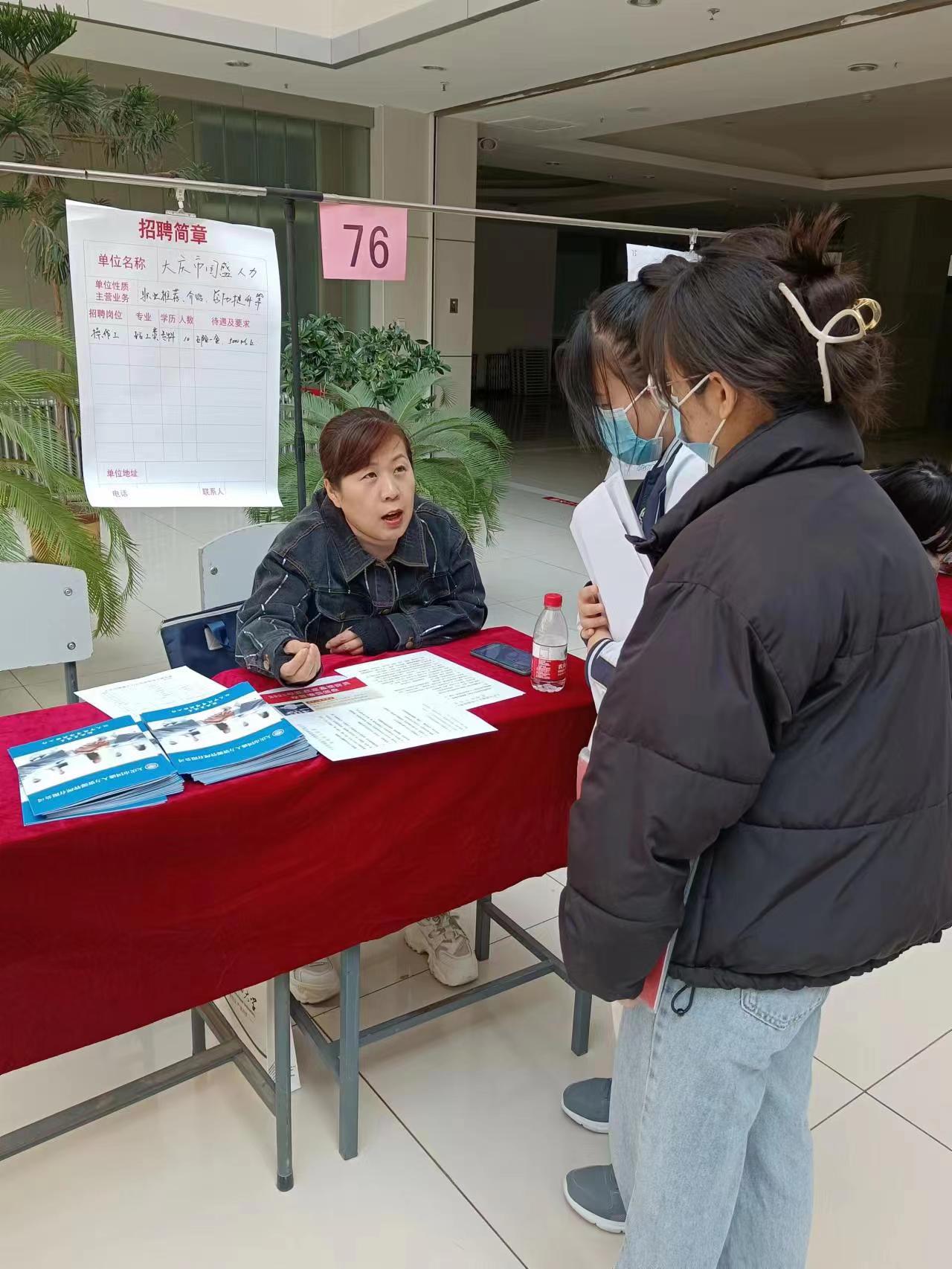 僅大慶國(guó)盛人力資源有限公司就接受80余名求職者簡(jiǎn)歷,提供近100余人的咨詢服務(wù),發(fā)放企業(yè)宣傳手冊(cè)120份。
