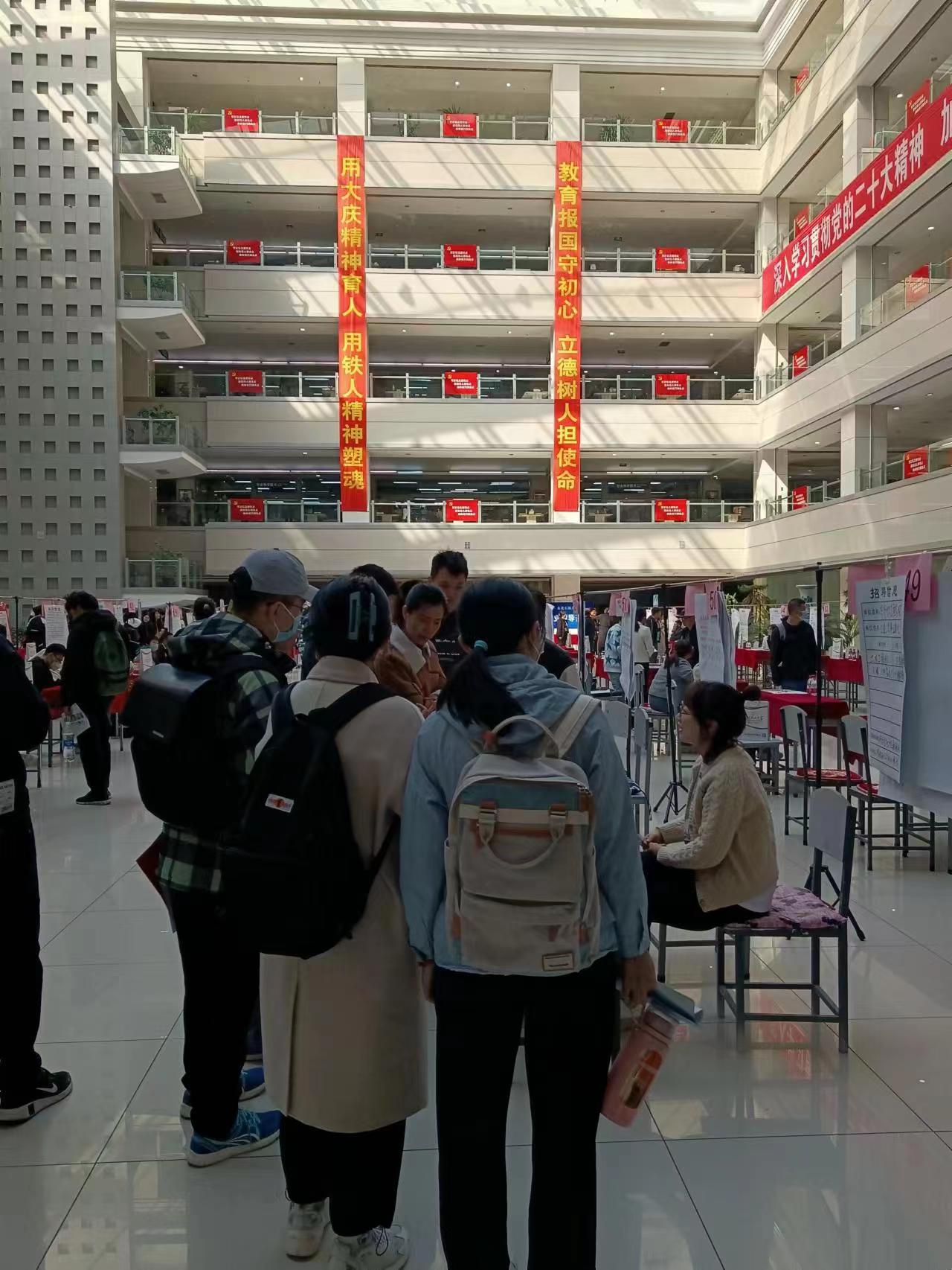為促進(jìn)2023屆高校畢業(yè)生充分就業(yè),市人力資源服務(wù)中心將于3—6月期間,組織用人單位赴我市駐慶高校舉辦系列線下招聘活動(dòng)。首場(chǎng)校園招聘會(huì)已于3月29日在大慶職業(yè)學(xué)院技師教育部辦公樓一樓舉辦。