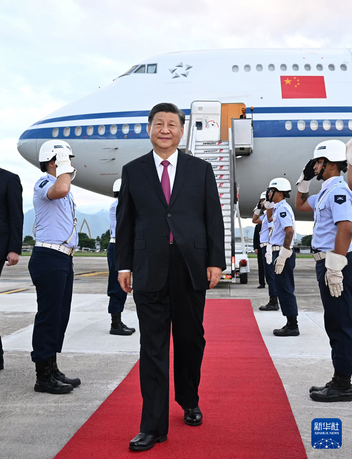 1月17日下午,國家主席習(xí)近平乘專機(jī)抵達(dá)里約熱內(nèi)盧,應(yīng)巴西聯(lián)邦共和國總統(tǒng)盧拉邀請,出席二十國集團(tuán)領(lǐng)導(dǎo)人第十九次峰會(huì)并對巴西進(jìn)行國事訪問。