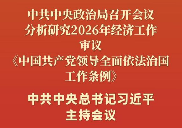 ??新華社北京12月8日電 中共中央政治局12月8日召開(kāi)會(huì)議,分析研究2026年經(jīng)濟(jì)工作,審議《中國(guó)共產(chǎn)黨領(lǐng)導(dǎo)全面依法治國(guó)工作條例》。中共中央總書記習(xí)近平主持會(huì)議。